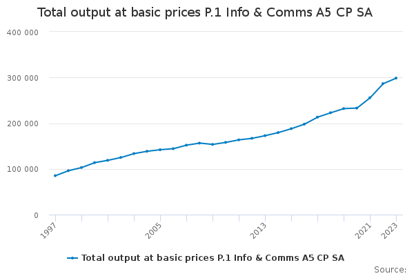 Download this time seriesTotal output at basic prices P.1 Info & Comms A5 CP SA