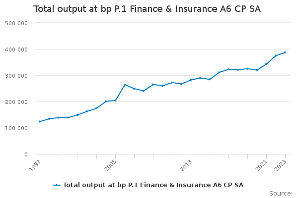 Download this time seriesTotal output at bp P.1 Finance & Insurance A6 CP SA