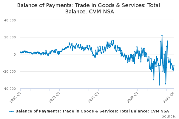 Download this time seriesBalance of Payments: Trade in Goods & Services: Total Balance: CVM NSA