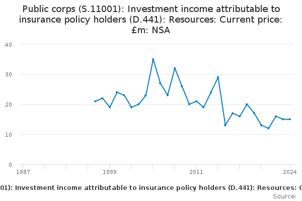 Download this time seriesPublic corps (S.11001): Investment income attributable to insurance policy holders (D.441): Resources: Current price: £m: NSA