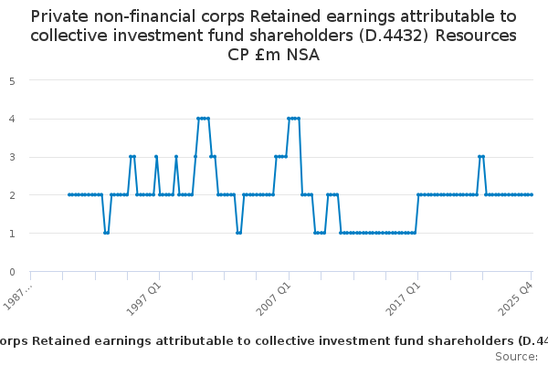 Download this time seriesPrivate non-financial corps Retained earnings attributable to collective investment fund shareholders (D.4432) Resources CP £m NSA
