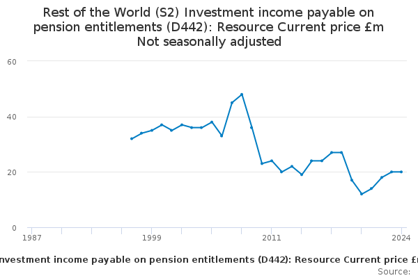 Download this time seriesRest of the World (S2) Investment income payable on pension entitlements (D442): Resource Current price £m Not seasonally adjusted