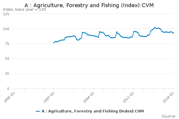 Download this time seriesA : Agriculture, Forestry and Fishing (Index):CVM