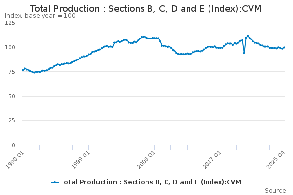 Download this time seriesTotal Production : Sections B, C, D and E (Index):CVM
