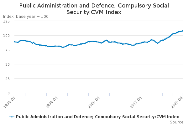 Download this time seriesPublic Administration and Defence; Compulsory Social Security:CVM Index