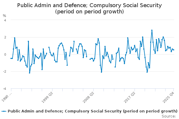 Download this time seriesPublic Admin and Defence; Compulsory Social Security (period on period growth)