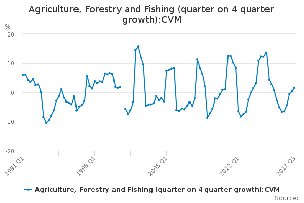 Download this time seriesAgriculture, Forestry and Fishing (quarter on 4 quarter growth):CVM
