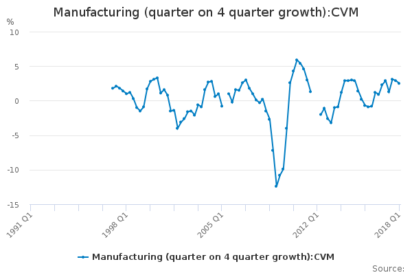 Download this time seriesManufacturing (quarter on 4 quarter growth):CVM