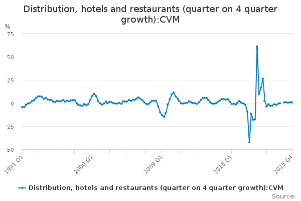 Download this time seriesDistribution, hotels and restaurants (quarter on 4 quarter growth):CVM