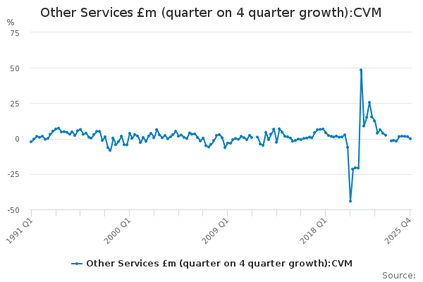 Download this time seriesOther Services £m (quarter on 4 quarter growth):CVM