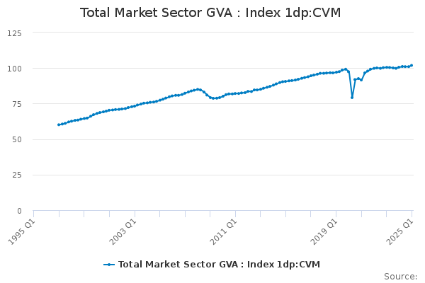 Download this time seriesTotal Market Sector GVA : Index 1dp:CVM