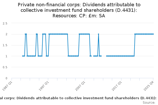 Download this time seriesPrivate non-financial corps: Dividends attributable to collective investment fund shareholders (D.4431): Resources: CP: £m: SA