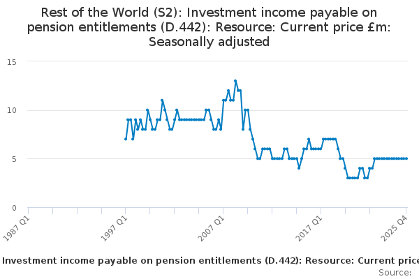 Download this time seriesRest of the World (S2): Investment income payable on pension entitlements (D.442): Resource: Current price £m: Seasonally adjusted