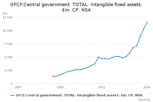 Download this time seriesGFCF:Central government: TOTAL: Intangible fixed assets: £m: CP: NSA
