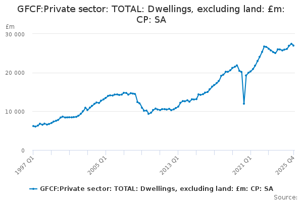 Download this time seriesGFCF:Private sector: TOTAL: Dwellings, excluding land: £m: CP: SA