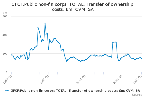 Download this time seriesGFCF:Public non-fin corps: TOTAL: Transfer of ownership costs: £m: CVM: SA