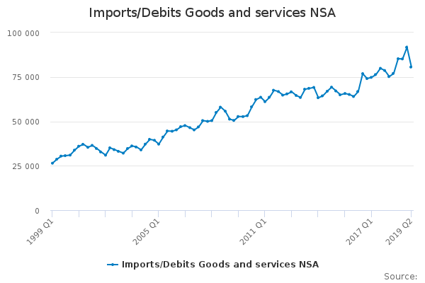 Download this time seriesImports/Debits Goods and services NSA