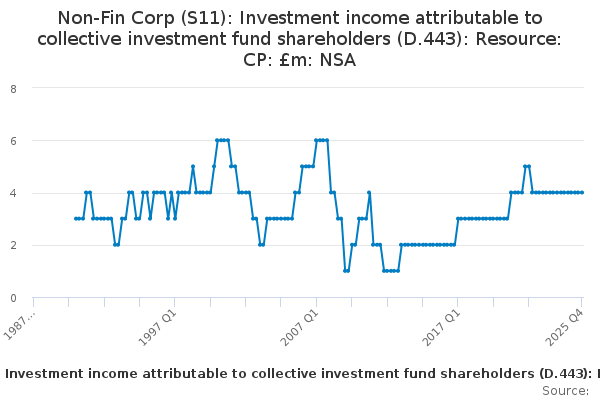 Download this time seriesNon-Fin Corp (S11): Investment income attributable to collective investment fund shareholders (D.443): Resource: CP: £m: NSA