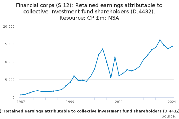 Download this time seriesFinancial corps (S.12): Retained earnings attributable to collective investment fund shareholders (D.4432): Resource: CP £m: NSA