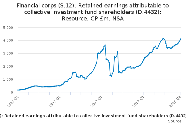 Download this time seriesFinancial corps (S.12): Retained earnings attributable to collective investment fund shareholders (D.4432): Resource: CP £m: NSA