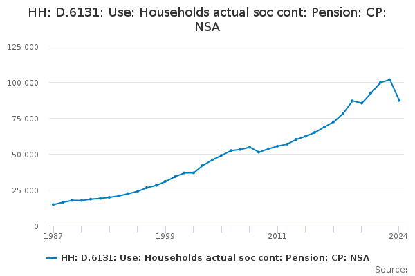 Download this time seriesHH: D.6131: Use: Households actual soc cont: Pension: CP: NSA