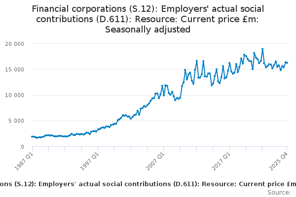 Download this time seriesFinancial corporations (S.12): Employers' actual social contributions (D.611): Resource: Current price £m: Seasonally adjusted