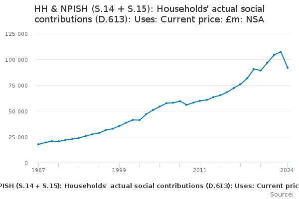 Download this time seriesHH & NPISH (S.14 + S.15): Households' actual social contributions (D.613): Uses: Current price: £m: NSA