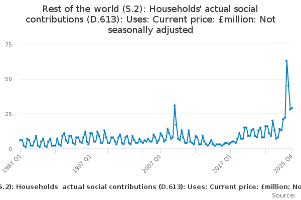 Download this time seriesRest of the world (S.2): Households' actual social contributions (D.613): Uses: Current price: £million: Not seasonally adjusted