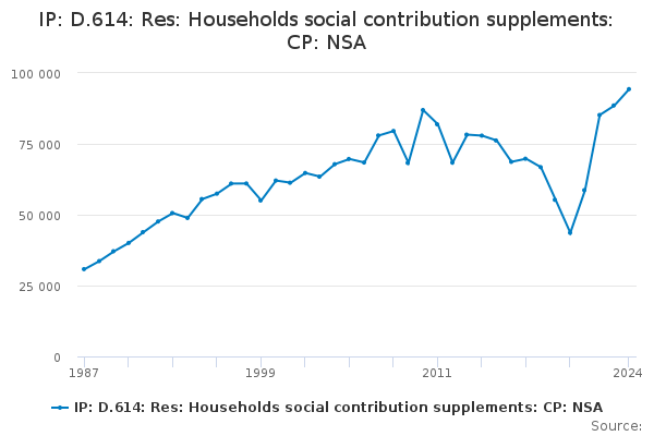 Download this time seriesIP: D.614: Res: Households social contribution supplements: CP: NSA