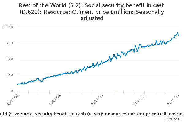 Download this time seriesRest of the World (S.2): Social security benefit in cash (D.621): Resource: Current price £million: Seasonally adjusted