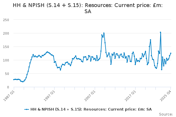 Download this time seriesHH & NPISH (S.14 + S.15): Resources: Current price: £m: SA
