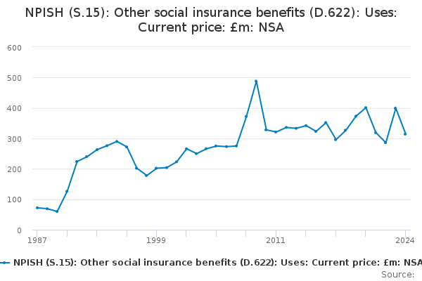 Download this time seriesNPISH (S.15): Other social insurance benefits (D.622): Uses: Current price: £m: NSA