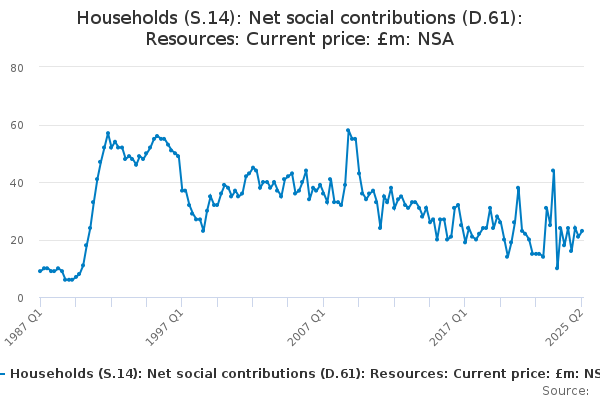 Download this time seriesHouseholds (S.14): Net social contributions (D.61): Resources: Current price: £m: NSA