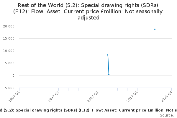 Download this time seriesRest of the World (S.2): Special drawing rights (SDRs) (F.12): Flow: Asset: Current price £million: Not seasonally adjusted