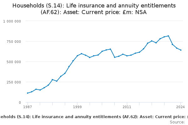 Download this time seriesHouseholds (S.14): Life insurance and annuity entitlements (AF.62): Asset: Current price: £m: NSA