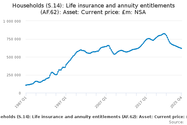 Download this time seriesHouseholds (S.14): Life insurance and annuity entitlements (AF.62): Asset: Current price: £m: NSA