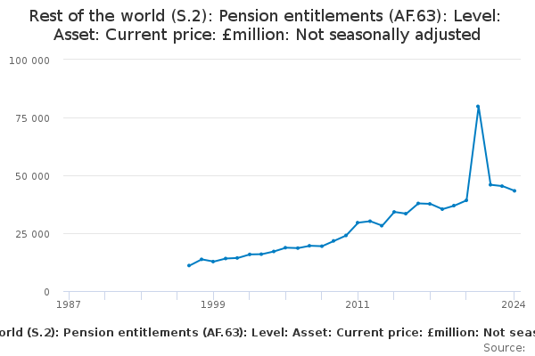 Download this time seriesRest of the world (S.2): Pension entitlements (AF.63): Level: Asset: Current price: £million: Not seasonally adjusted
