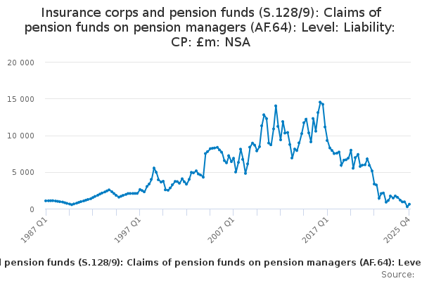 Download this time seriesInsurance corps and pension funds (S.128/9): Claims of pension funds on pension managers (AF.64): Level: Liability: CP: £m: NSA