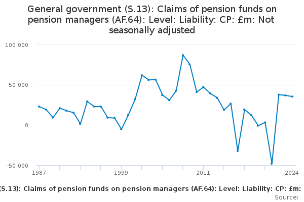 Download this time seriesGeneral government (S.13): Claims of pension funds on pension managers (AF.64): Level: Liability: CP: £m: Not seasonally adjusted