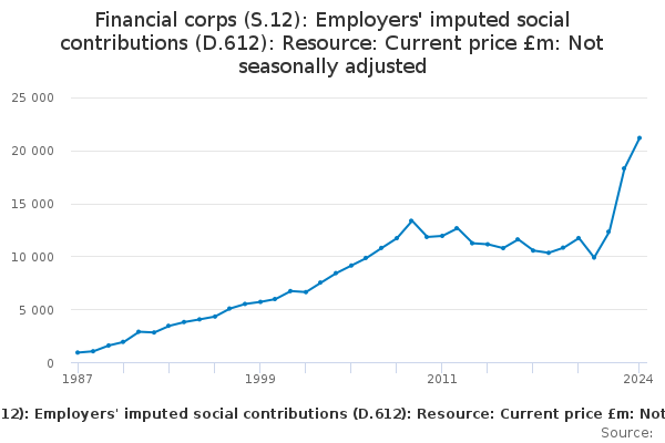 Download this time seriesFinancial corps (S.12): Employers' imputed social contributions (D.612): Resource: Current price £m: Not seasonally adjusted
