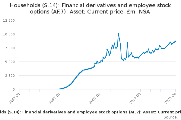 Download this time seriesHouseholds (S.14): Financial derivatives and employee stock options (AF.7): Asset: Current price: £m: NSA