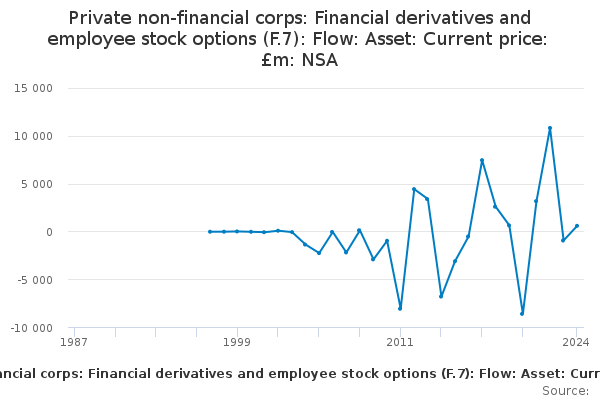 Download this time seriesPrivate non-financial corps: Financial derivatives and employee stock options (F.7): Flow: Asset: Current price: £m: NSA