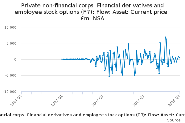 Download this time seriesPrivate non-financial corps: Financial derivatives and employee stock options (F.7): Flow: Asset: Current price: £m: NSA