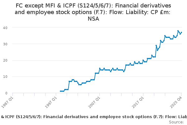 Download this time seriesFC except MFI & ICPF (S124/5/6/7): Financial derivatives and employee stock options (F.7): Flow: Liability: CP £m: NSA