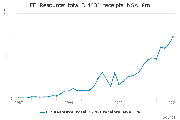 Download this time seriesFE: Resource: total D.4431 receipts: NSA: £m