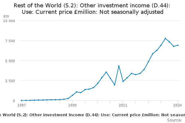 Download this time seriesRest of the World (S.2): Other investment income (D.44): Use: Current price £million: Not seasonally adjusted