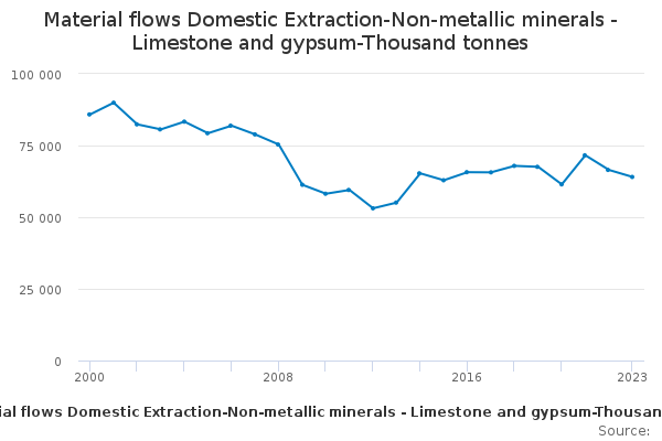 Download this time seriesMaterial flows Domestic Extraction-Non-metallic minerals - Limestone and gypsum-Thousand tonnes