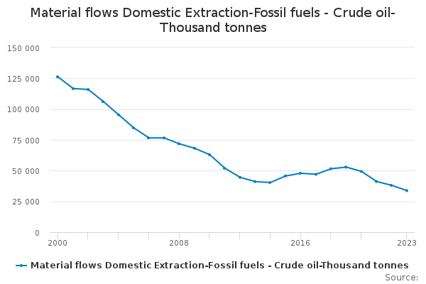Download this time seriesMaterial flows Domestic Extraction-Fossil fuels - Crude oil-Thousand tonnes