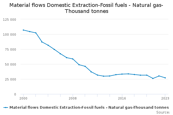 Download this time seriesMaterial flows Domestic Extraction-Fossil fuels - Natural gas-Thousand tonnes