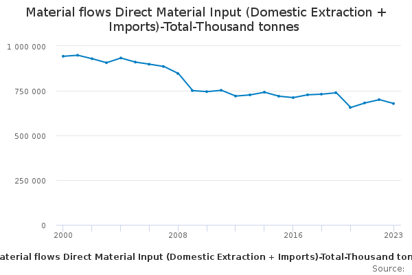 Download this time seriesMaterial flows Direct Material Input (Domestic Extraction + Imports)-Total-Thousand tonnes
